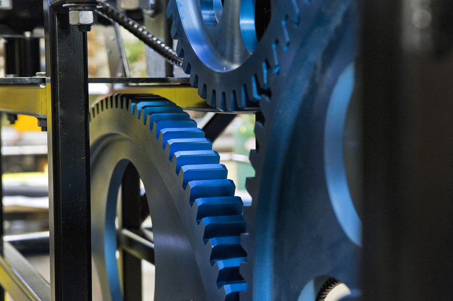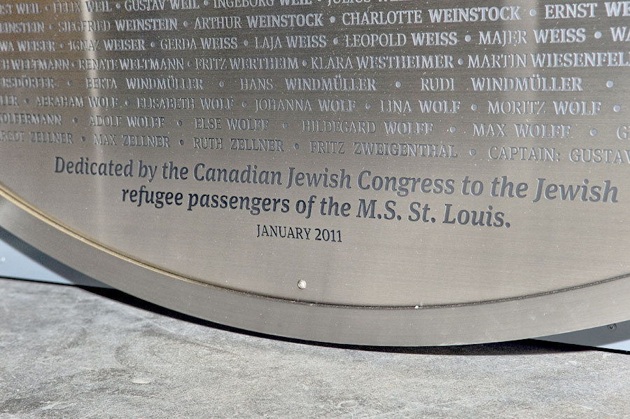 Highlights: The stainless steel clad, laser etched wheels on the face of the monument are turned by gears, which are symbolic of the ship's gears. On the rim of the large wheel is the description of the tragedy of the M.S. St. Louis. It is surrounded by an etched map of the world displaying the ship's route on the cylinder. On the reverse side of the memorial are etched the names of all the passengers. The monument is built up from a 1/2" x 1/2" steel tube frame with heavy duty electric motors mounted and shaft connected to the internal 3" thick anodized aluminum gears. The exterior shell is 1/16" thick stainless steel that has the Soheil Mosun Limited specialty combo finish and is acid etched. The front artwork is a laser etched reproduction of an original photograph of the M.S. St.Louis. The entire front piece is glazed with 3/8" thick glass protecting the gears.