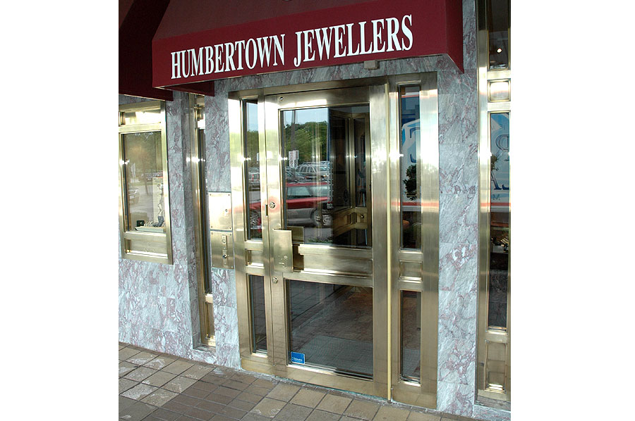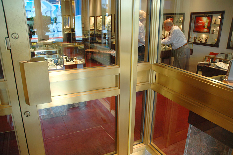 Scope: Solid and clad bronze entry doors, display windows, display cases and trims with high security fabrication details and hardware.