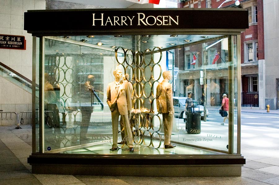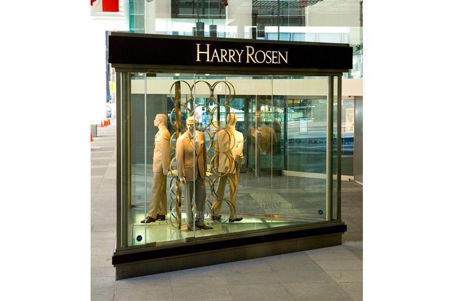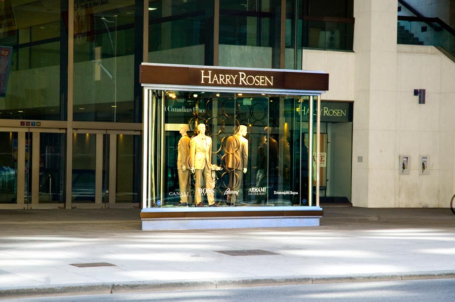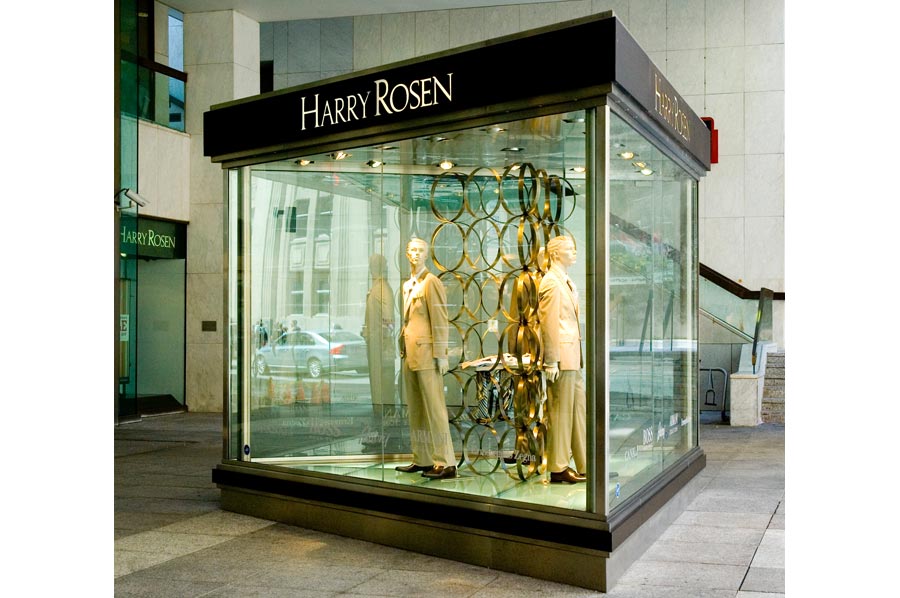 Scope: Soheil Mosun Limited was contracted to fabricate and install (1) metal and glass structure, an exterior display case for the Harry Rosen menswear store located in First Canadian Place.