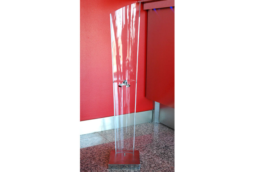 Scope: Soheil Mosun Limited created these ultra high quality Olympic Torch Stands for the owner of OC Tanner stores. The Torch Stands present these objects in an elegant setting with no impediment to viewing due to the nature of the design and materials used and can be wall mounted in addition to freestanding.